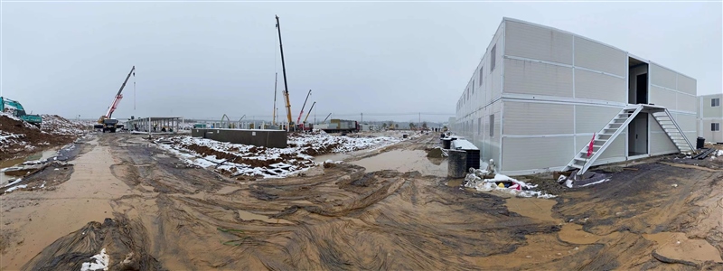 2月8日,新年的第一場暴雪終于遏制住怒吼,各搶建班組全力加速推進準(zhǔn)備區(qū)折疊房和隔離區(qū)打包房的安裝,室內(nèi)淋浴房、水電及室外電力電纜井砌筑等多個作業(yè)面施工全面展開,現(xiàn)場掀起節(jié)后施工新一輪大干熱潮。