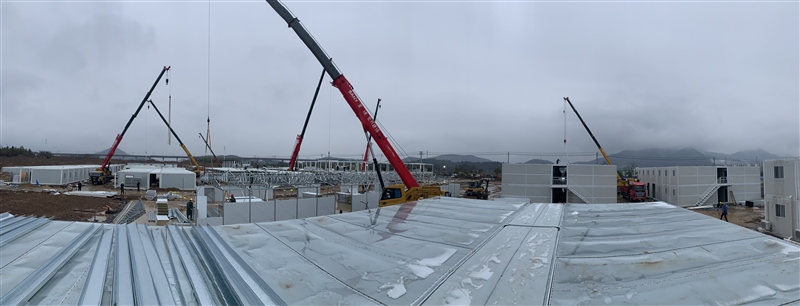 隔離點項目建設(shè)離完工僅剩十余天,自1月21日開工以來,各參建方努力調(diào)配一切可用的人力、物資,在全力保障項目建設(shè)的同時,努力節(jié)約采購成本。今日,施工現(xiàn)場近300人作業(yè),變壓器已安裝完成,打包房、板房、折疊房及水電設(shè)備等安裝進展迅速。